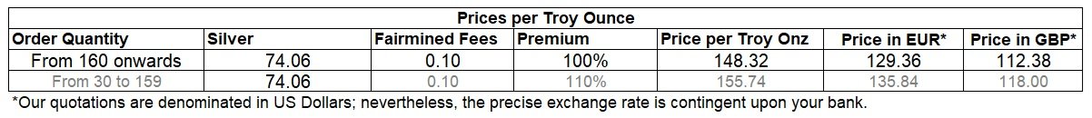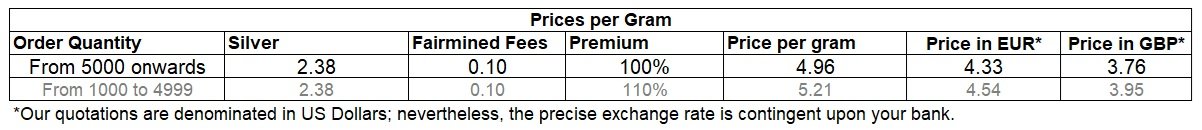 Fairmined Silver Pricing